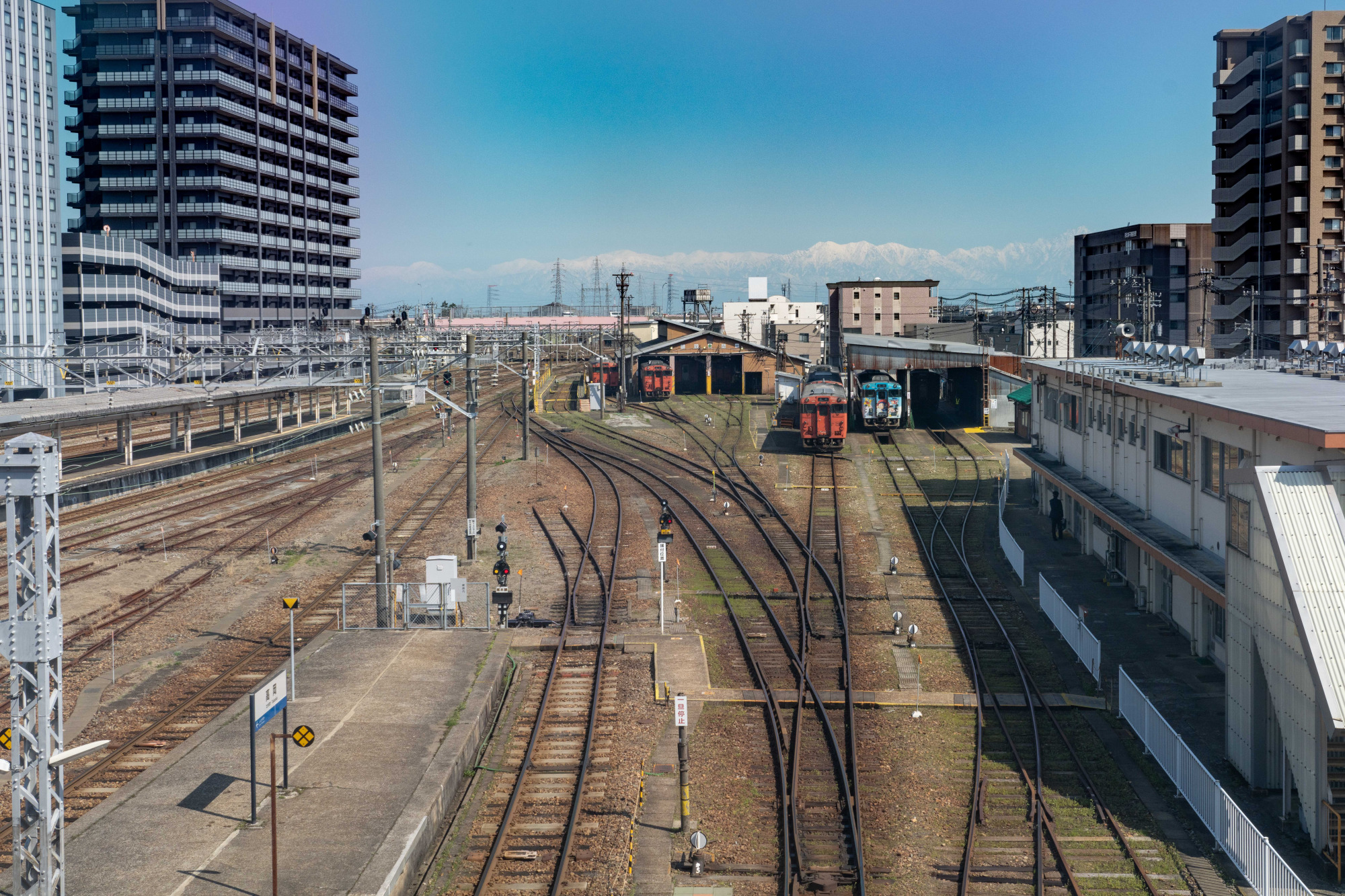 さらに雪国ならではのラッセル車が待機する姿や、富山方面からやってきた貨物列車が機関車の前後を付け替え、進行方向を変えていく「機回し(スイッチバック)」もここで見ることができるため見ていて飽きません。かつて「特急銀座」と呼ばれた北陸本線の名残である、驚くほど長いホームには少し切なさを感じますが、それもまた高岡駅の歴史を感じることができます。
