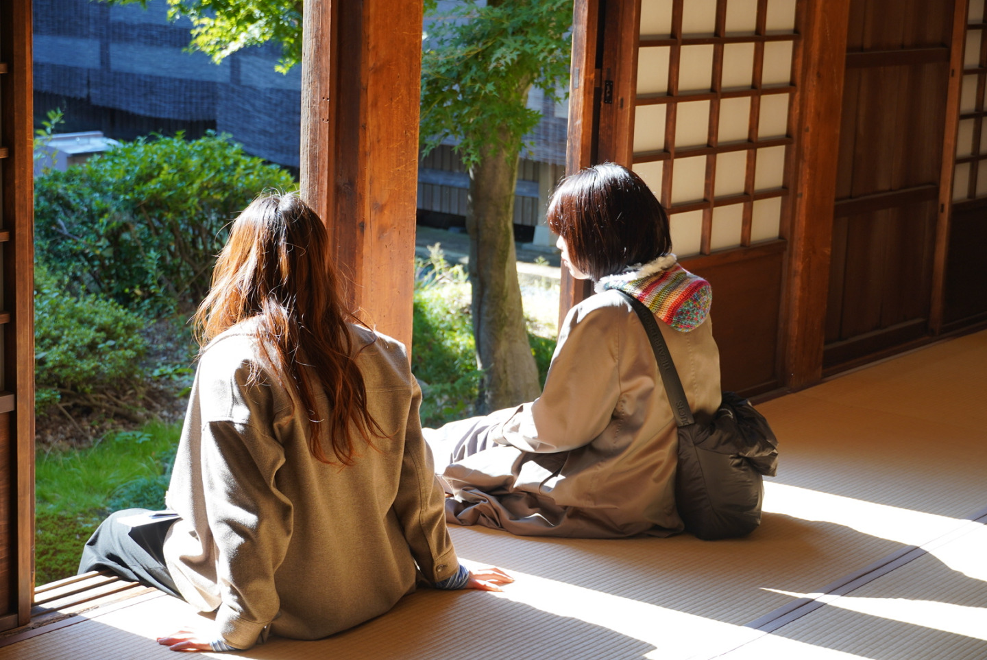 遠目で見た時は、左右対称のお庭と建築の美しさに圧倒され、中に進んでいくと、木目の温かさや芝生の緑に心が安らぎました。