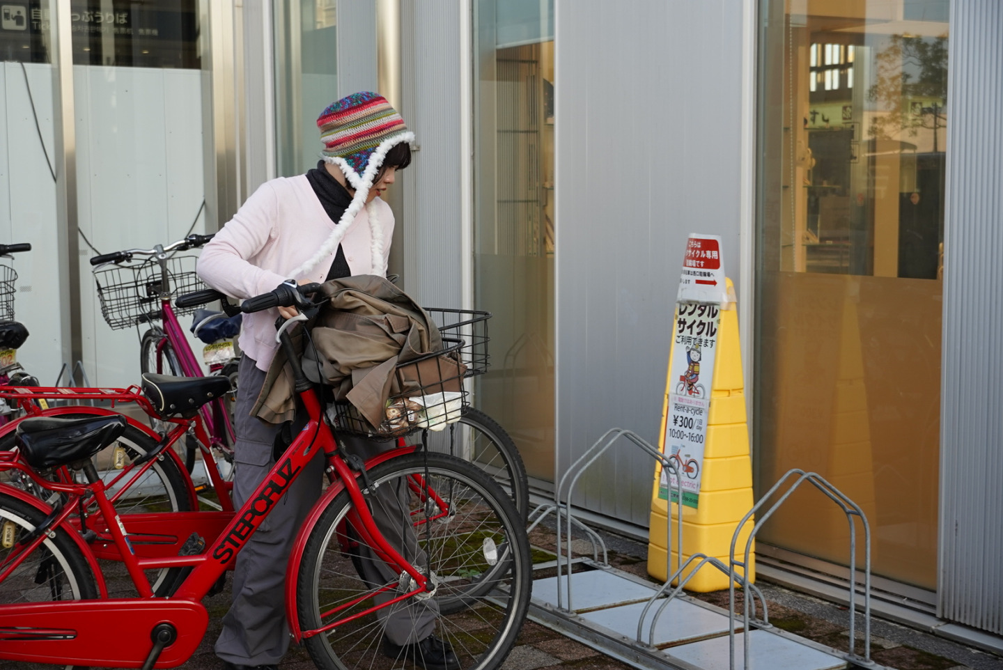 新幹線や電車で高岡駅に着いたら、まずは駅前で自転車をレンタル!荷物はそのまま、高岡観光がすぐにスタートできます。