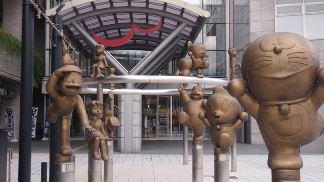 建物前の広場には、楽しそうなドラえもんたちの銅像が立ち並ぶ「ドラえもんの散歩道」もありますよ。