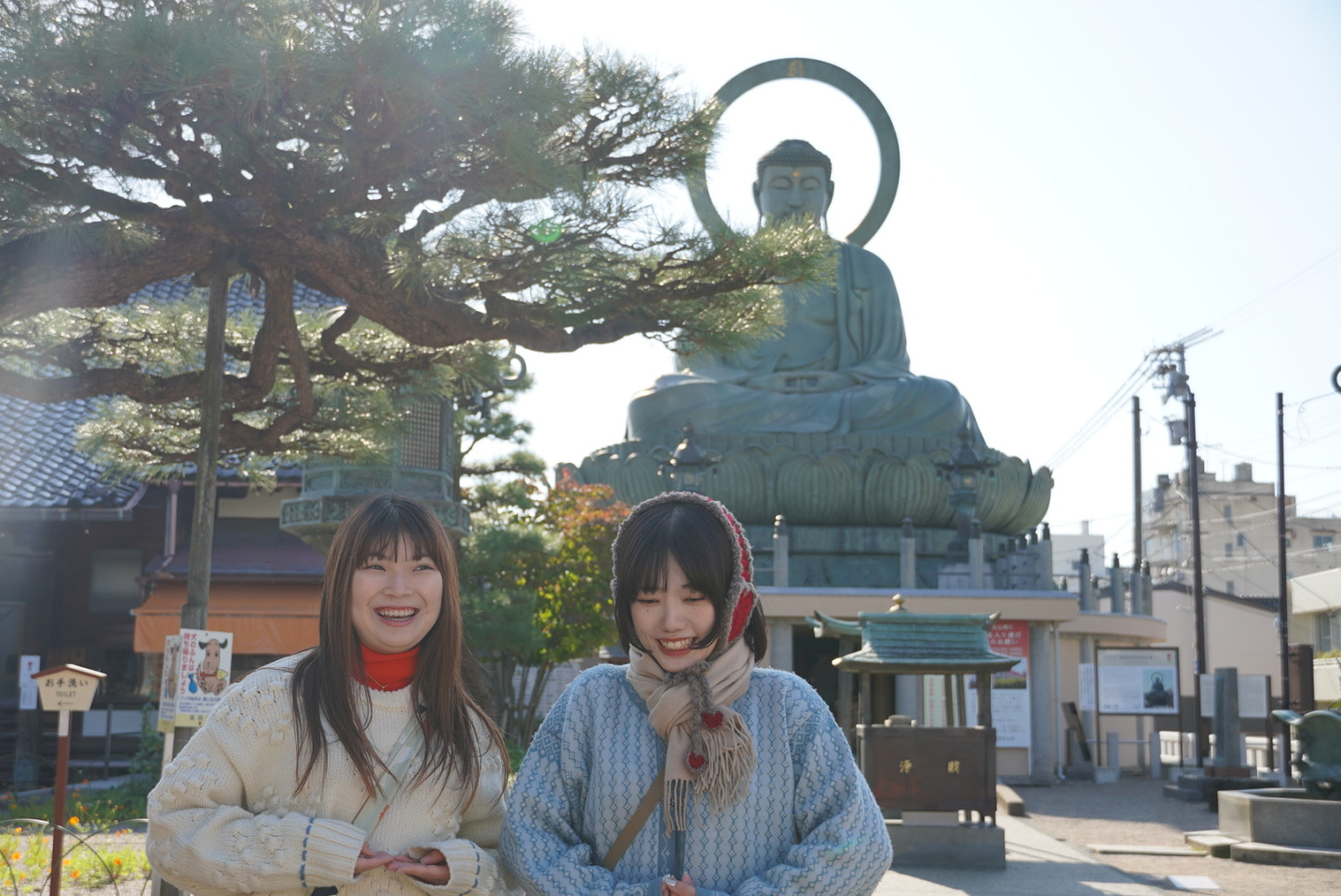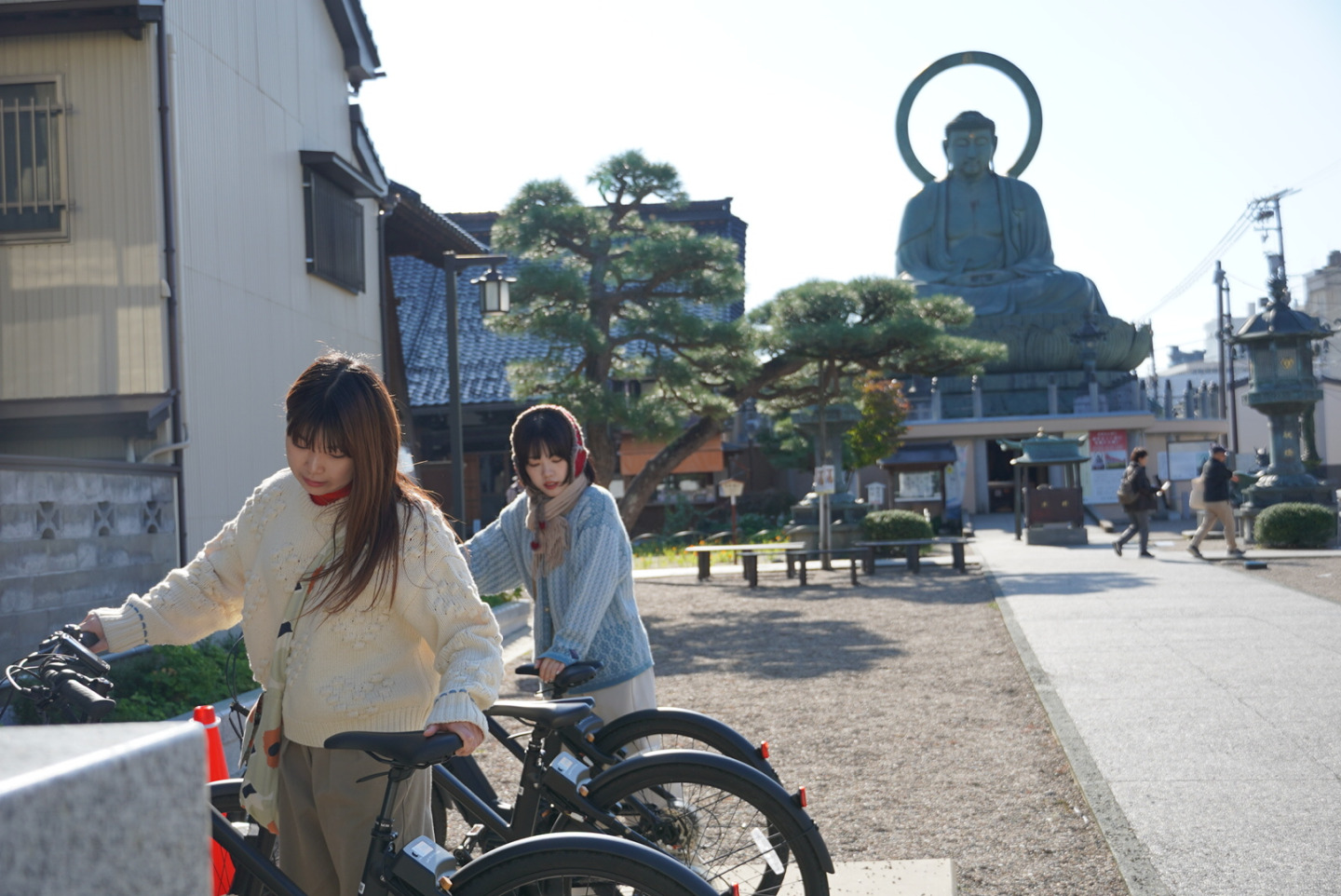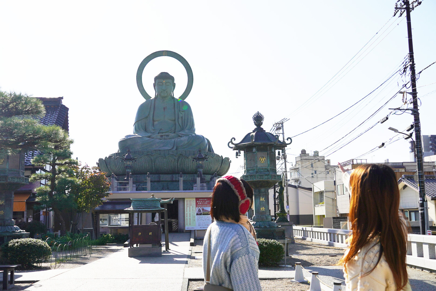 高岡のまちを自転車で巡るなら、ぜひ立ち寄りたいのが「高岡大仏」。
