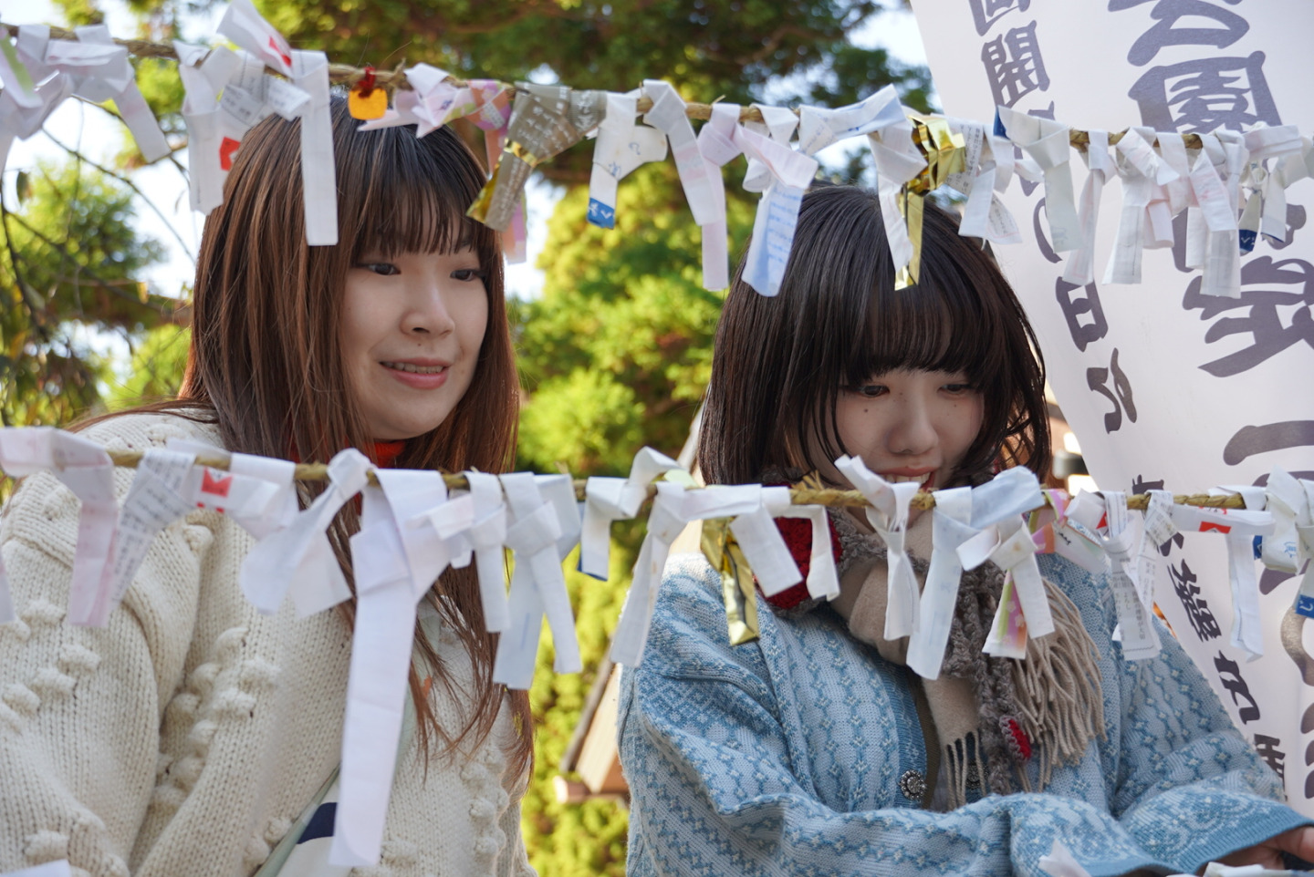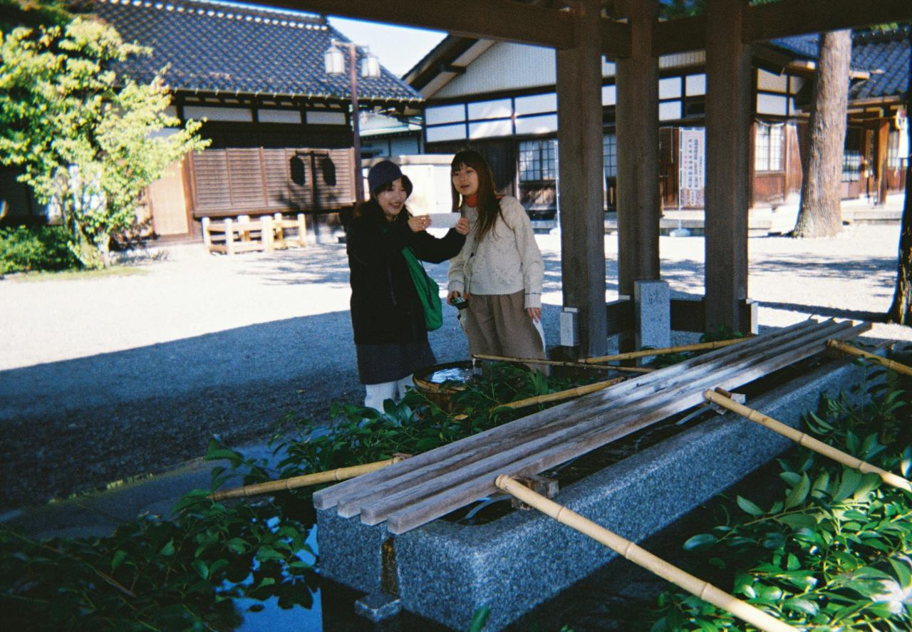 古城公園の中にあるこの神社の雰囲気が好きで、今回の旅で、お気に入りになりました!みんなで水みくじを水につけてみる瞬間が楽しかった!