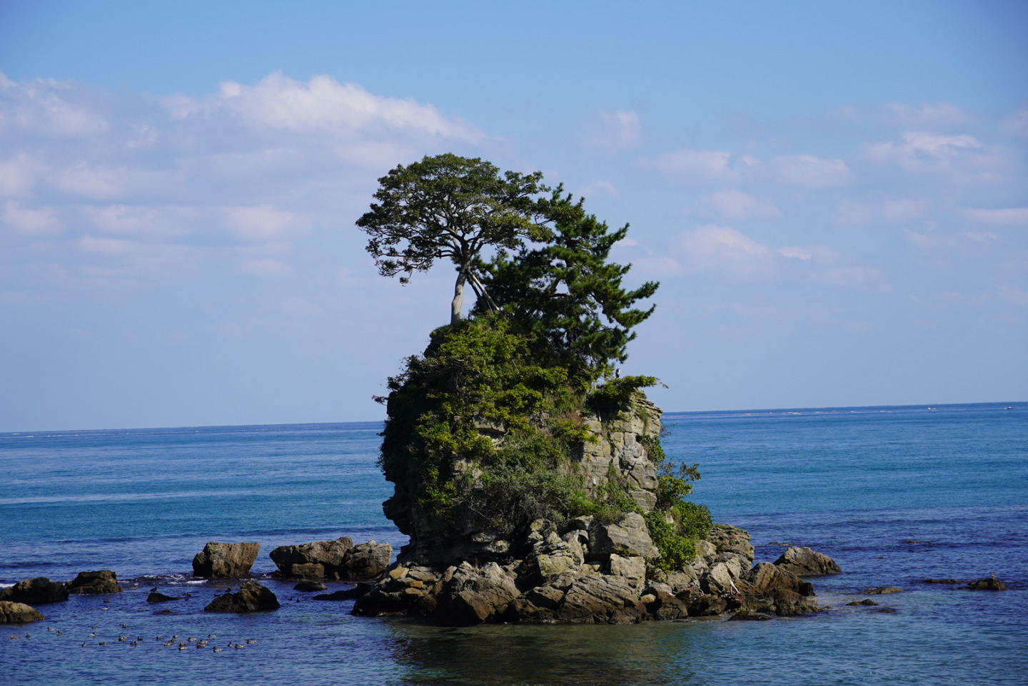 雨晴海岸は、海の向こうに立山連峰がそびえる、まさに“ここでしか見られない”絶景スポット。