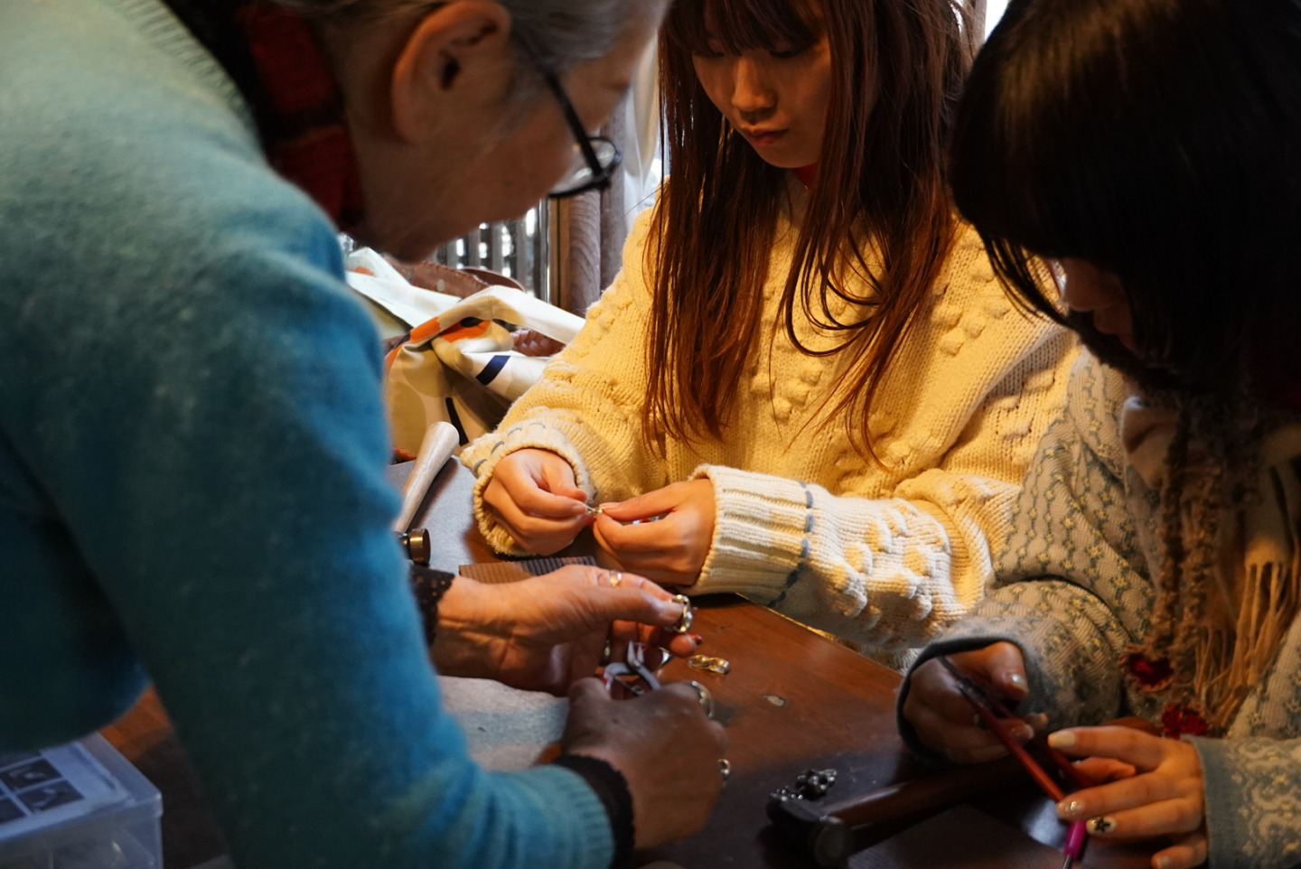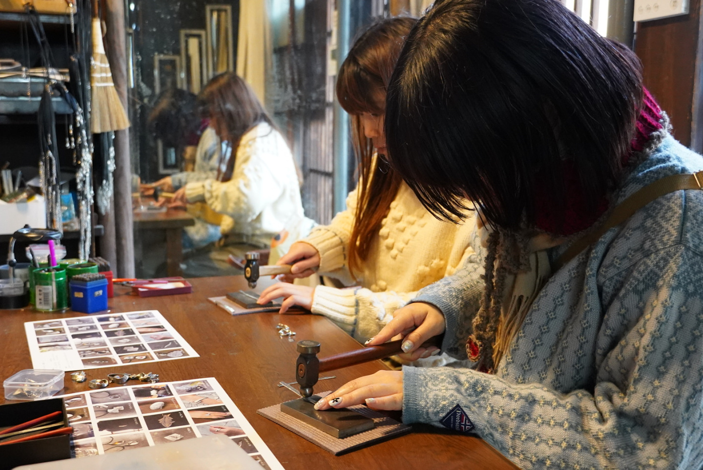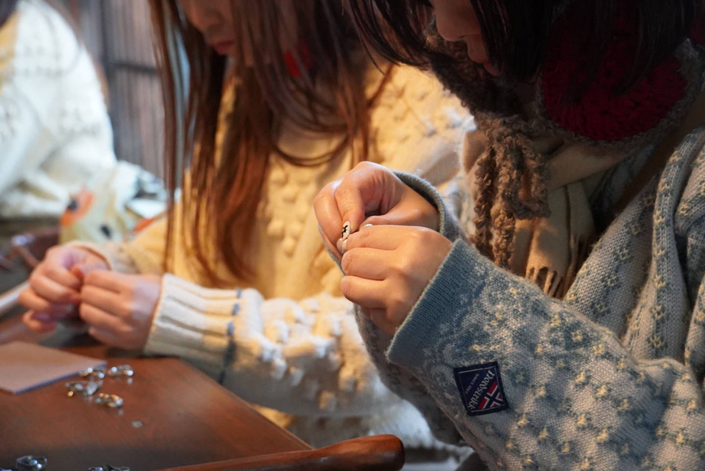 高岡で受け継がれてきた金属・錫(すず)を使い、アクセサリーづくりを体験できます。