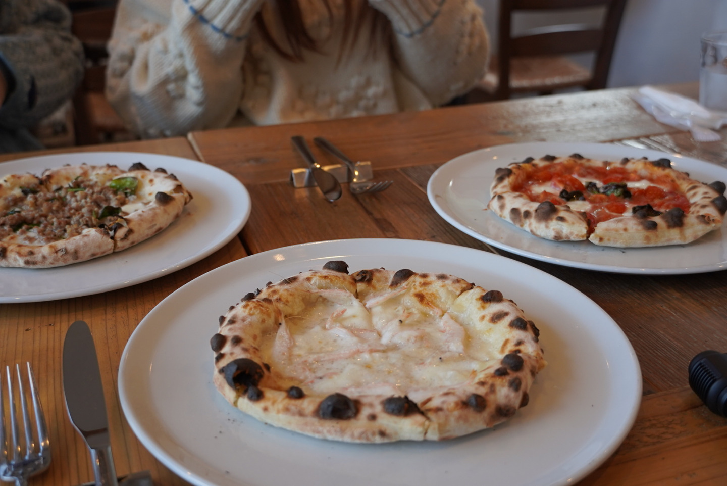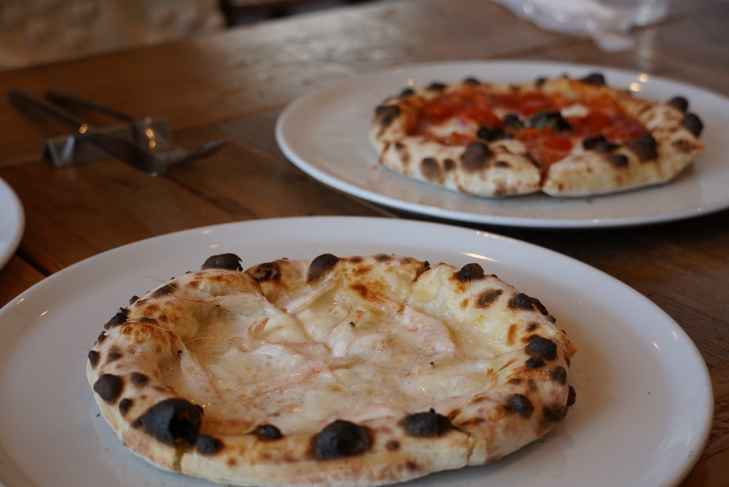 白エビのピザは、海鮮の豊かな香りを楽しむことができ、生地がもっちり軽いのであっという間に食べてしまいました。窓からの絶景も含め、ここでしか味わえない逸品です。