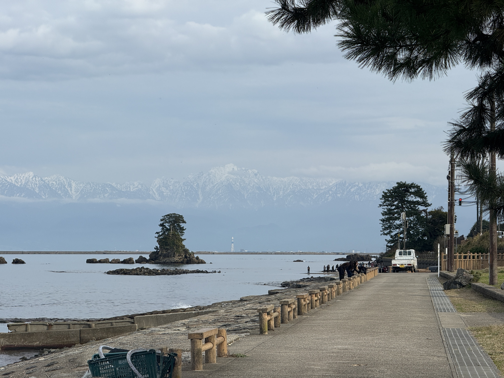 ↓実際の雨晴西部園地はこちら。この遊歩道を歩くシーンで使われました。