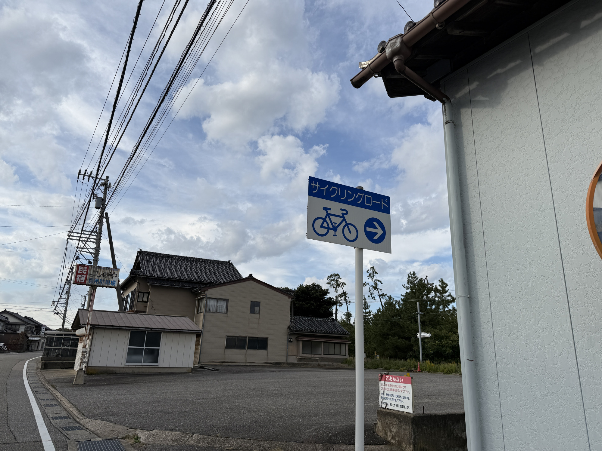 「サイクリングロード」の看板を目印にここで右に曲がります。