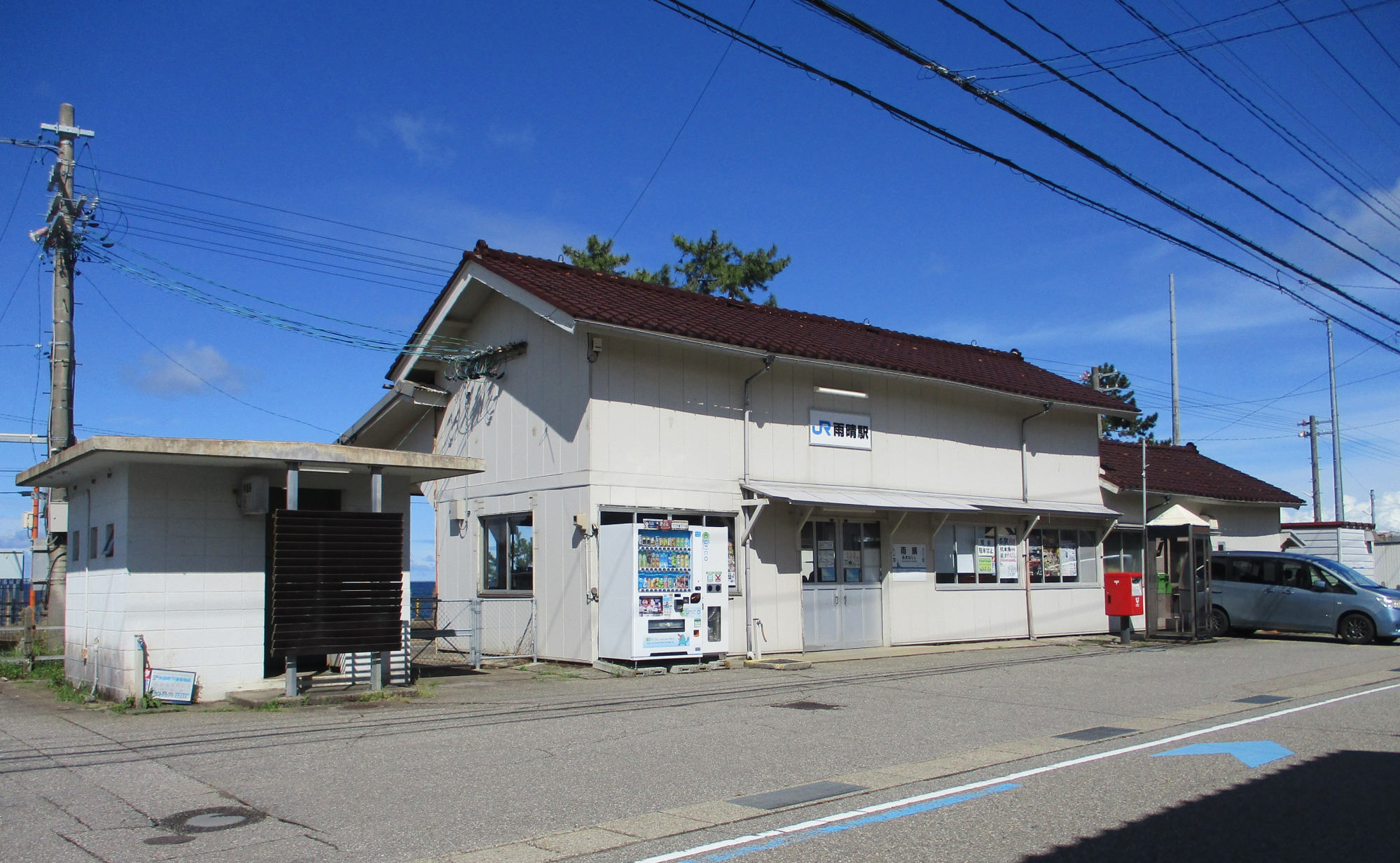 雨晴駅を出て右側に徒歩3分「雨晴海岸 入口」の看板が見えてきます。