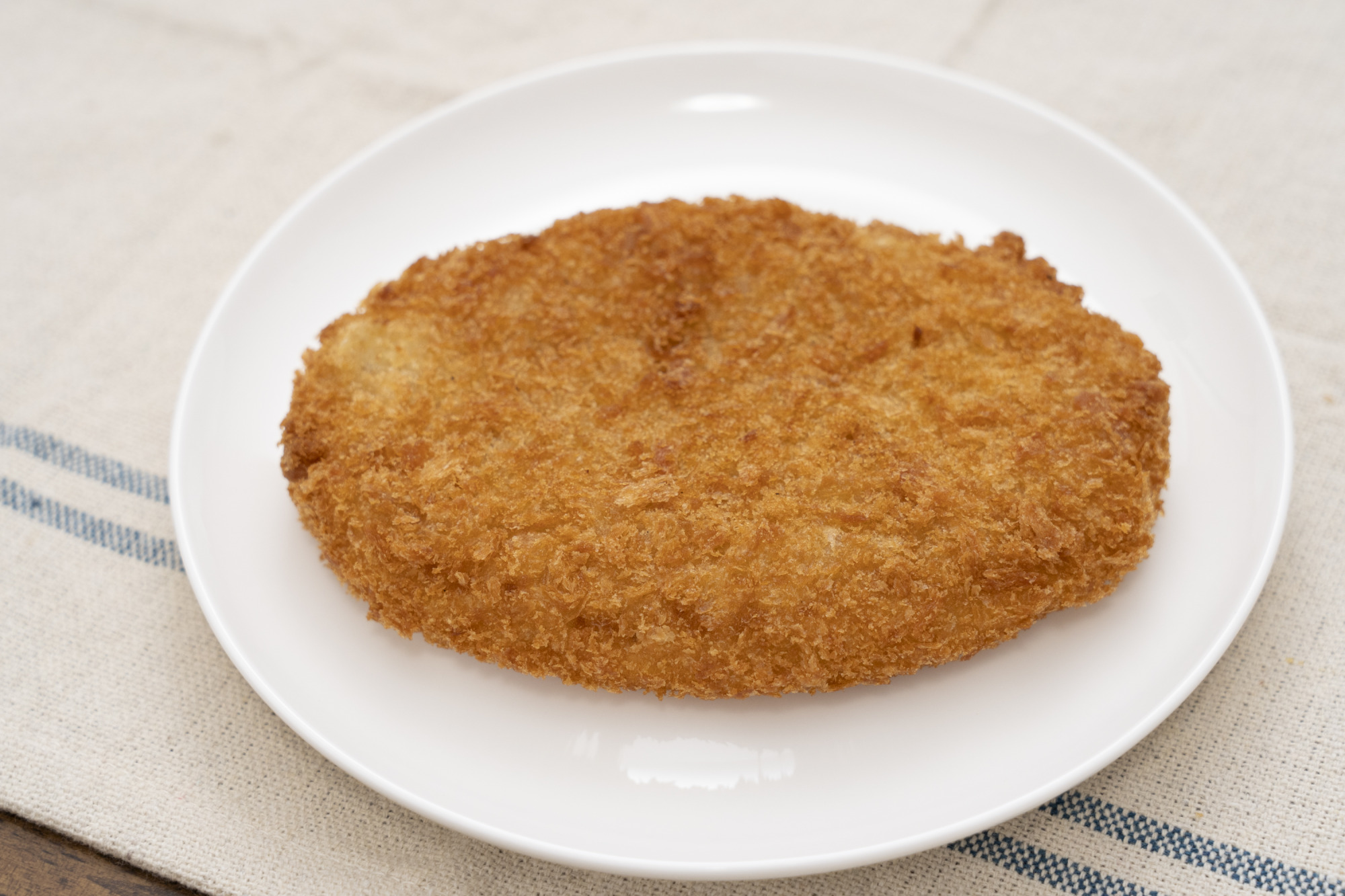 ふっくら仕上げた「ふつうコロッケ」は、牛豚合い挽き肉と玉ねぎの旨みが生きた、昔ながらの素朴な味わい。