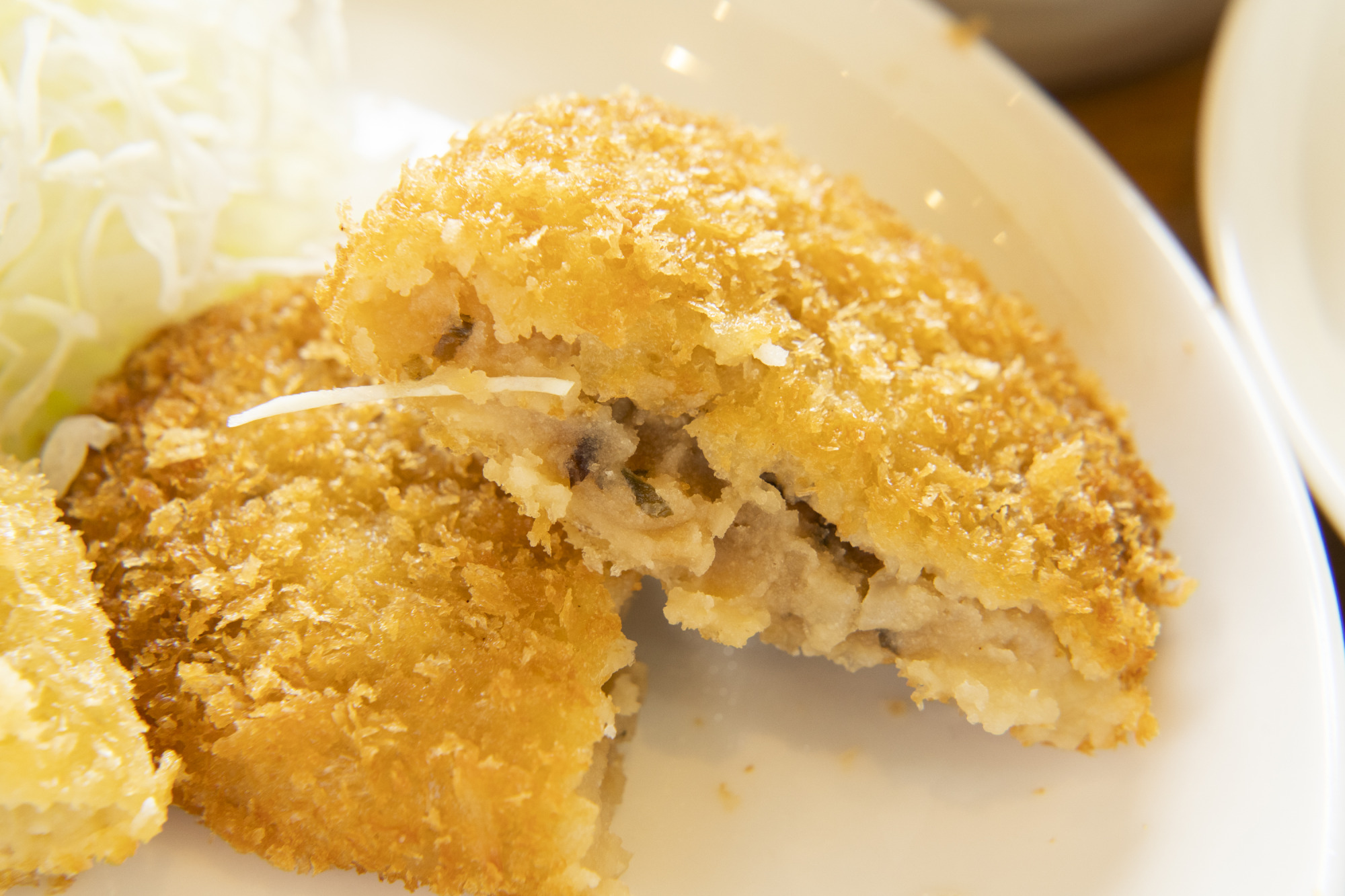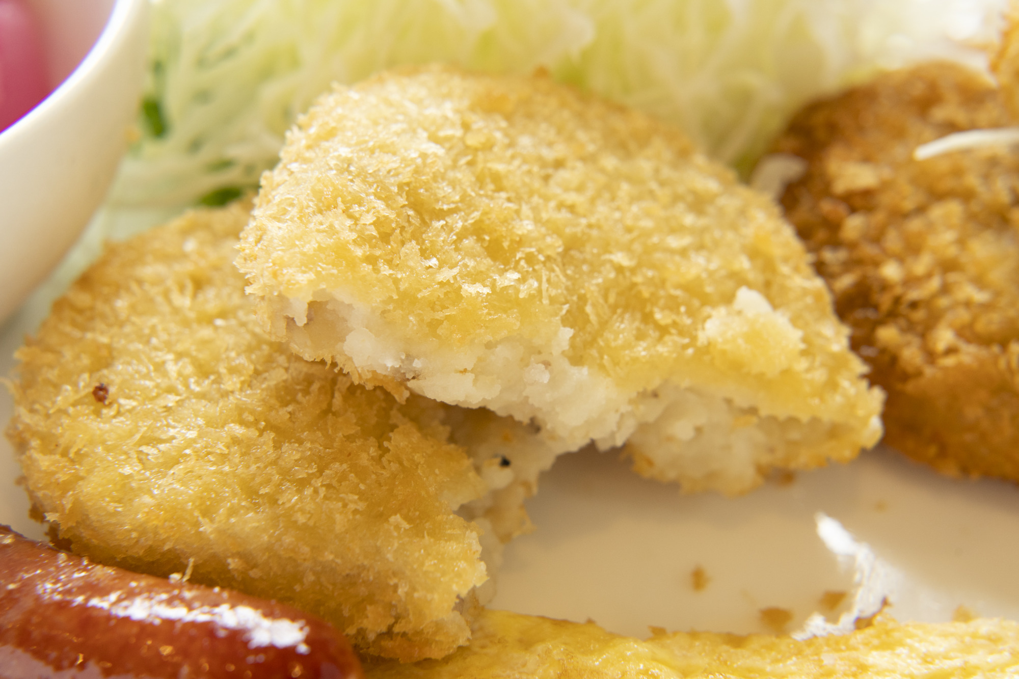 甘めのコロッケに塩味がバランスよく効いており、衣はサクサク。