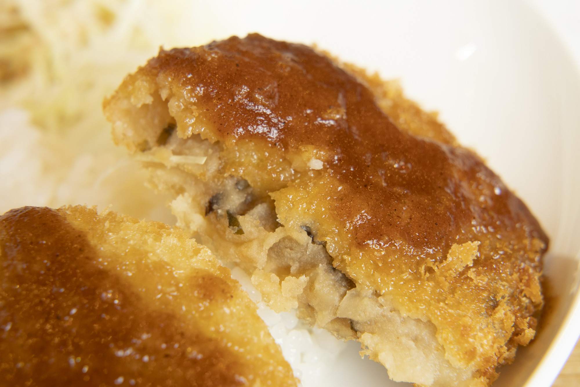 ひと口かじると、サクッと軽やかな衣の中から、ジューシーな肉の旨みがぎゅぎゅっと広がります。