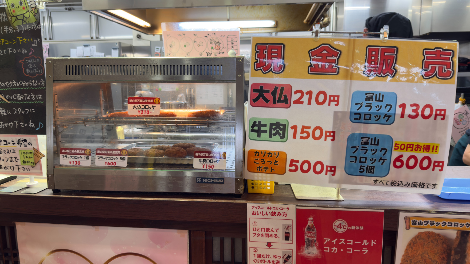 コロッケの注文はソフトクリーム受け取り口のすぐそばです。