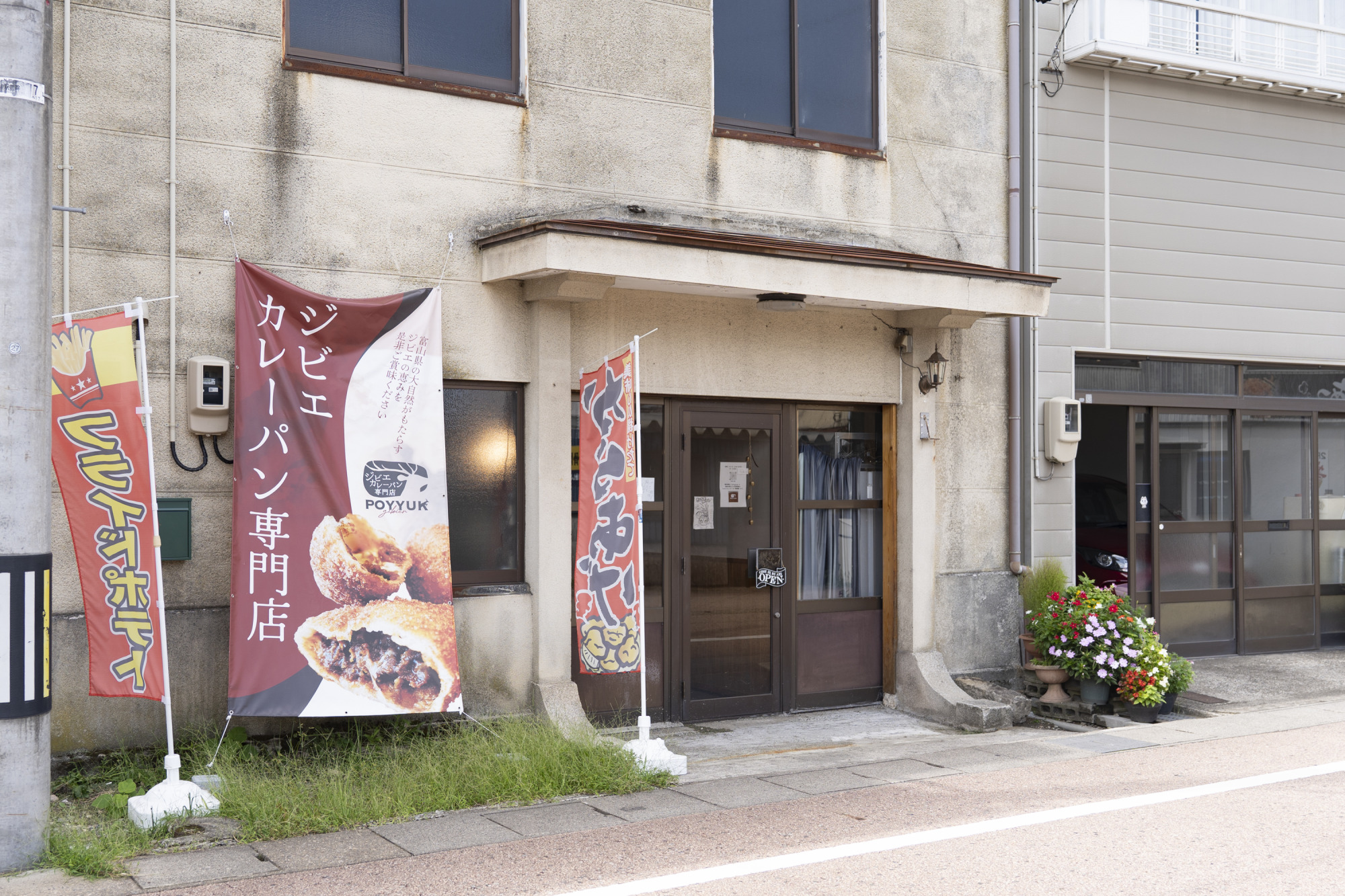 戸出駅を出てすぐ、大きなのぼりが目印です。