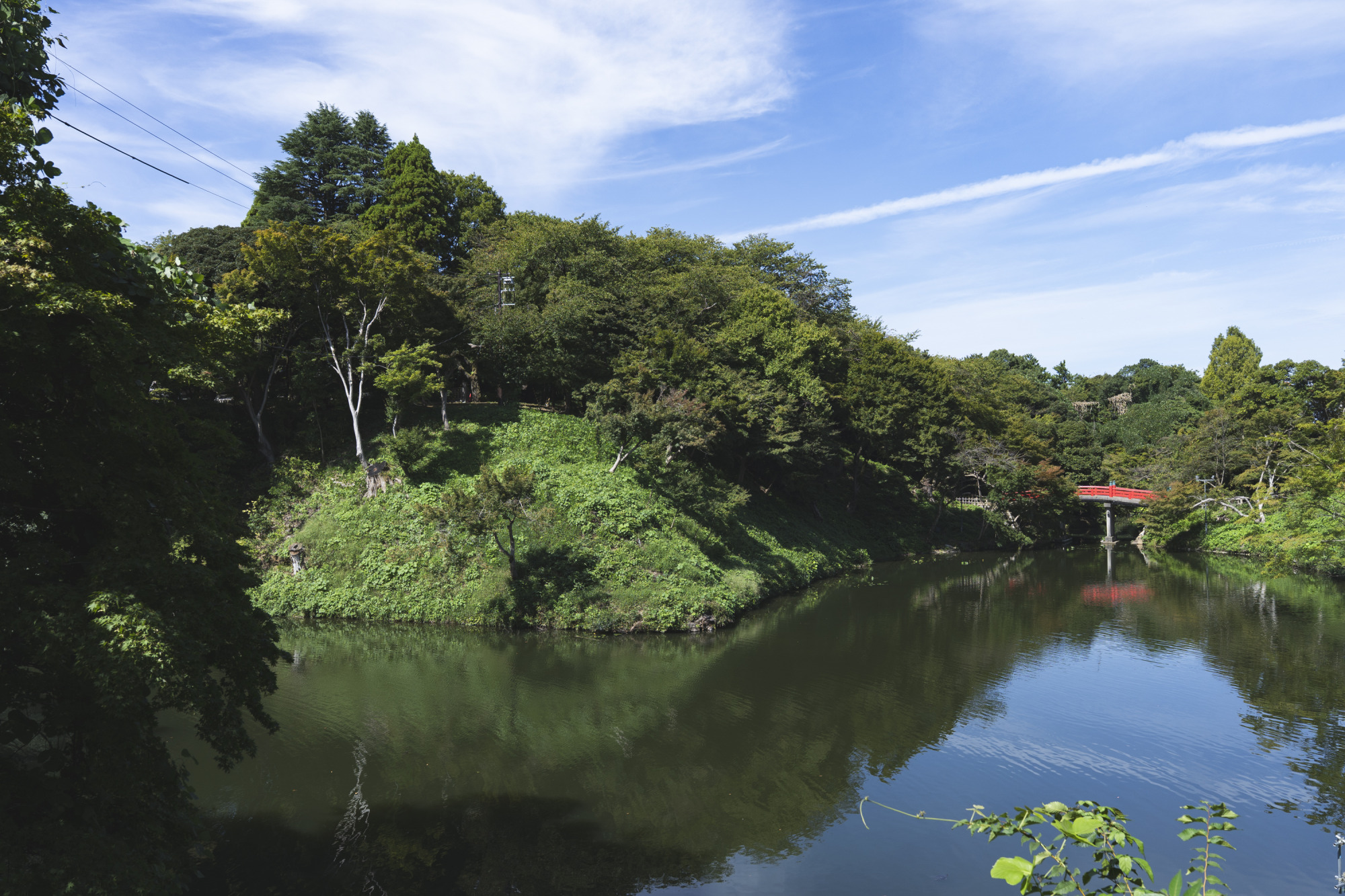そのおよそ3分の1を水濠が占め、水面に映る木々や空が、野趣あふれる美しい景観をつくり出しています。