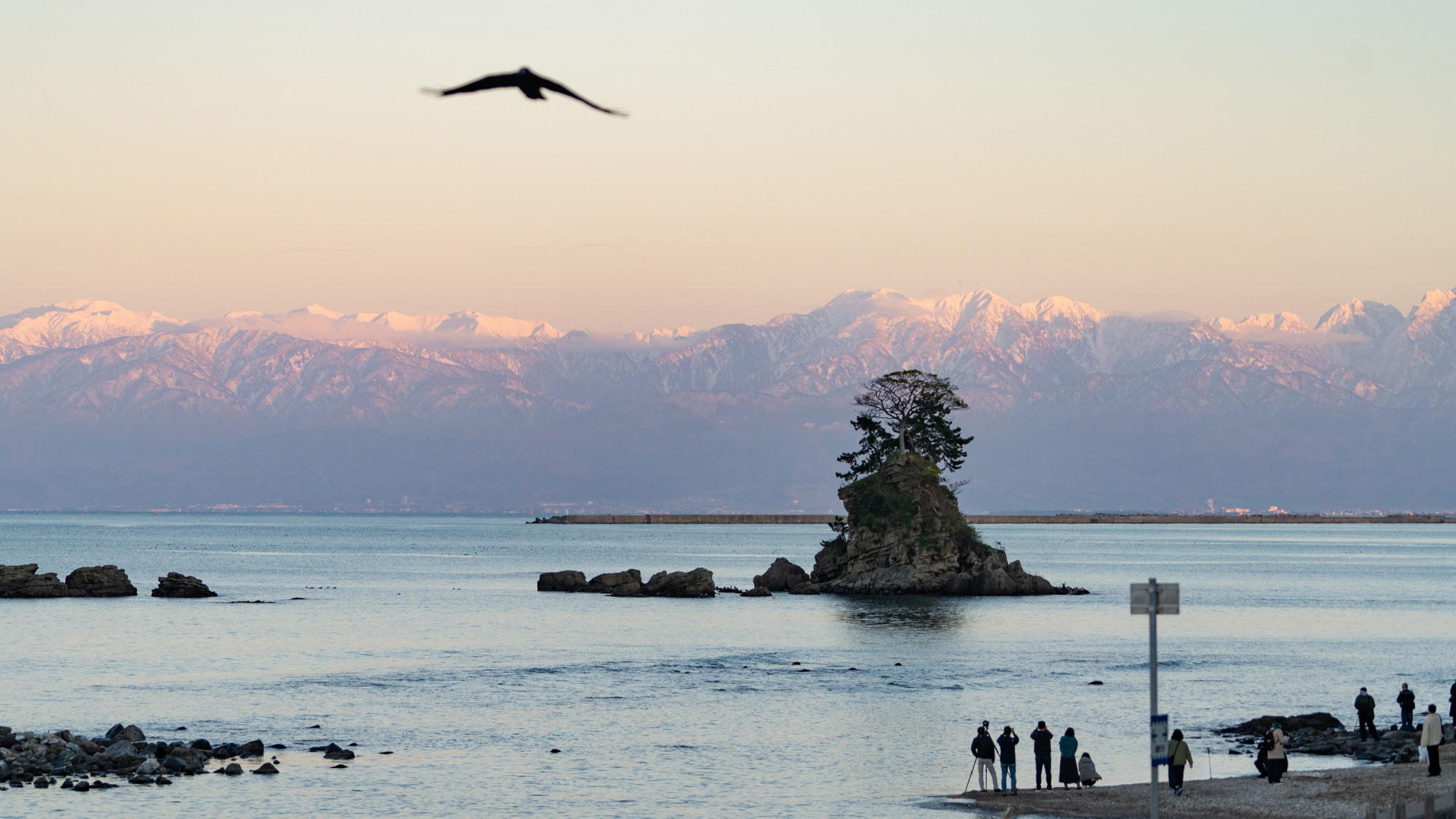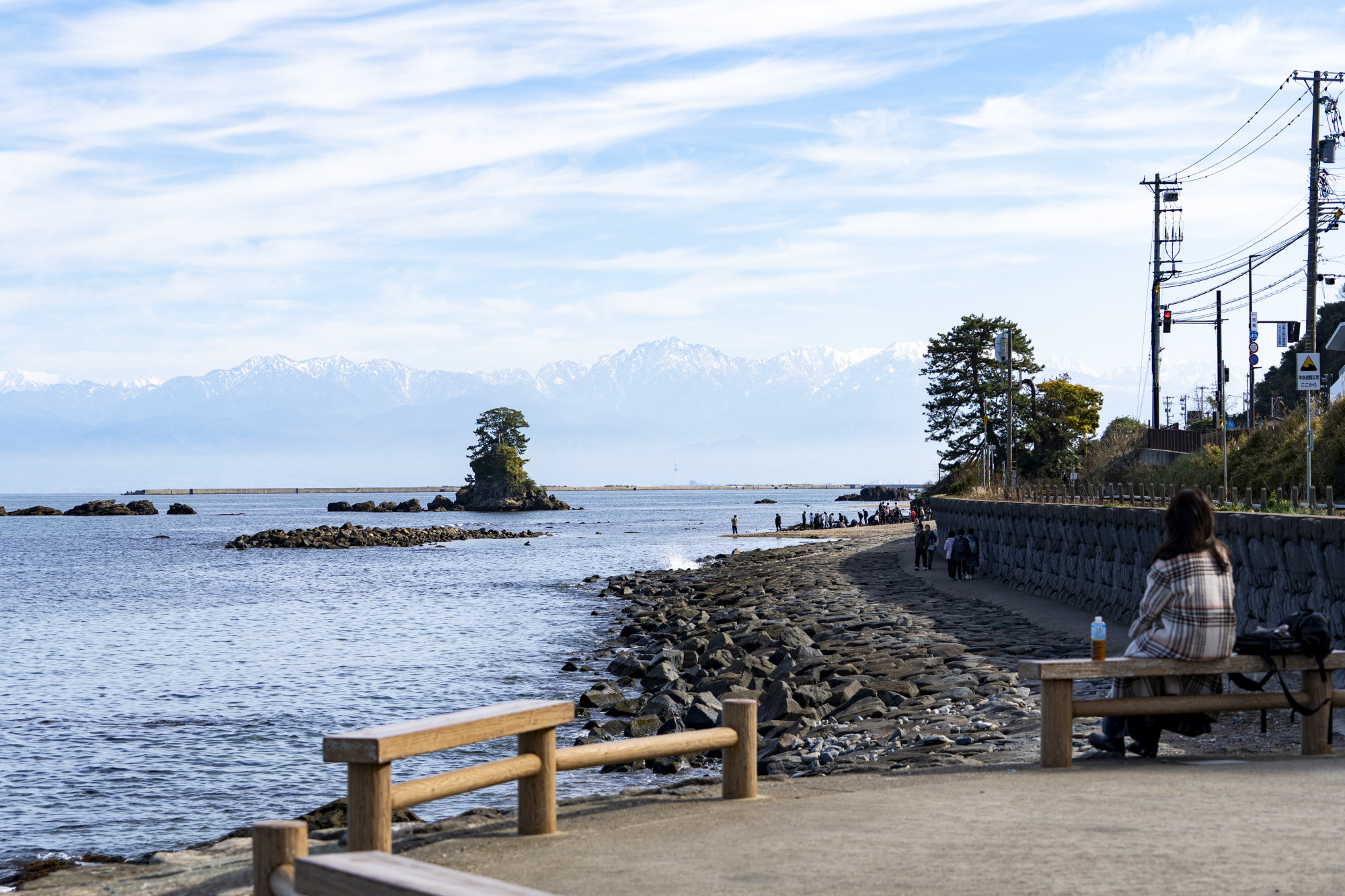 穏やかな砂浜と岩礁が連なる海岸線、そして天候や時間帯によって表情を変える立山連峰。