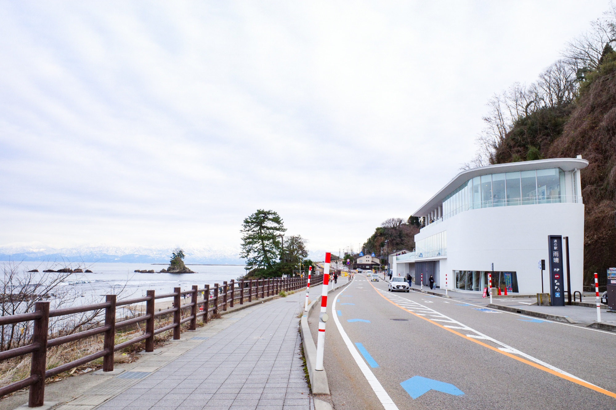 歌碑は、道の駅 雨晴の2階デッキにあり、海と磯を見下ろす場所で、万葉の歌と風景を同時に味わうことができます。