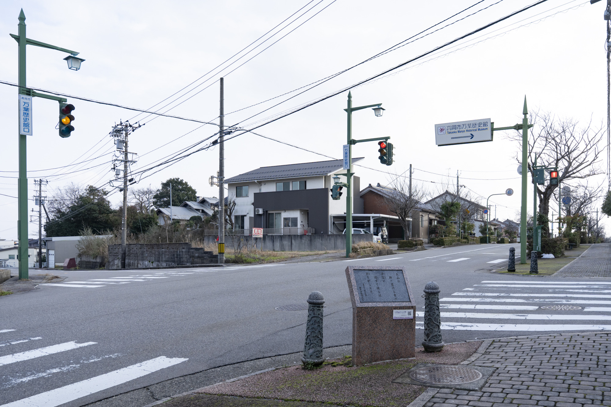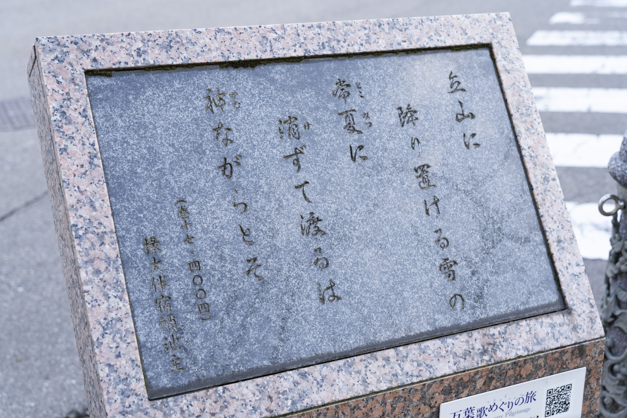 万葉歴史館の近く、館口交差点には、万葉歌碑17「立山の雪」が建てられています。