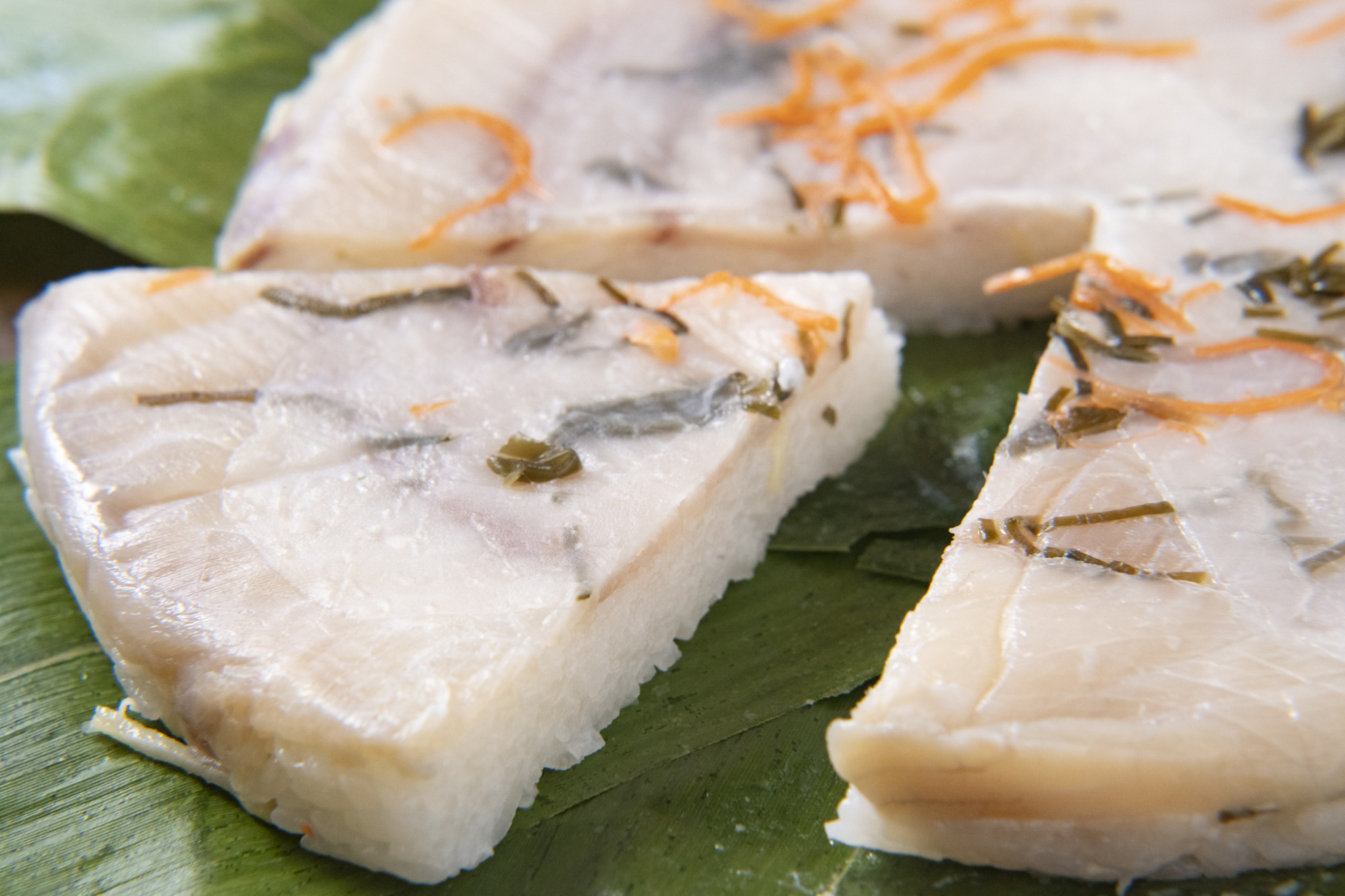 ますのすしとはまた違った味わいを楽しめるのが魅力です。笹の葉を開くと、かぶらと昆布やにんじんを纏ったぶりがお目見えします。