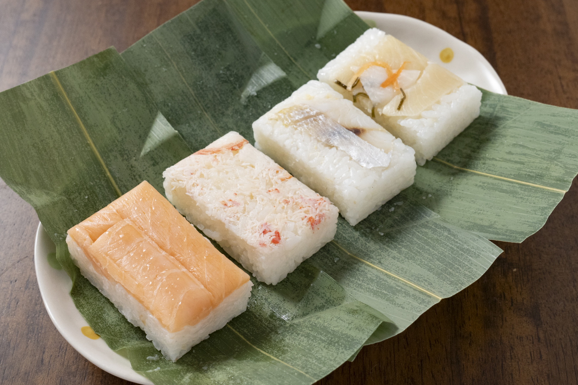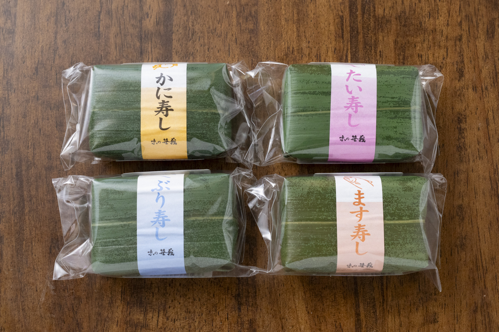 お店に並んでいたのは、ます寿し、ぶり寿し、かに寿し、たい寿しの4種類。