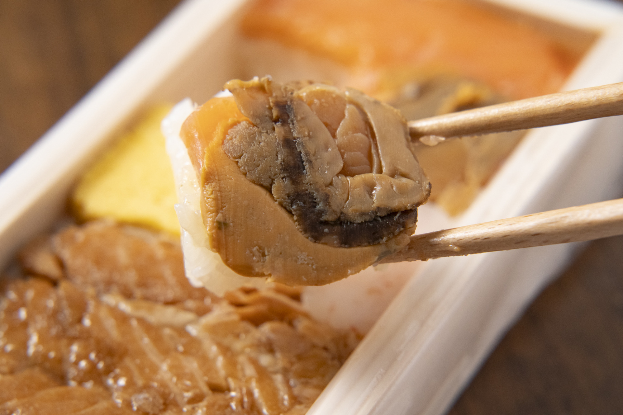ますやぶりはしっかりとした旨味があり、甘エビはやさしい甘さ、帆立はほどよい食感。