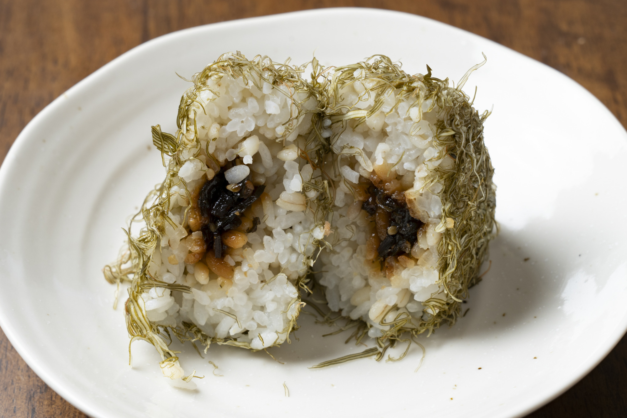 甘みのある日高昆布との相性抜群。ご飯にはもち麦が使われていて、ぷちぷちとした食感も良いアクセントになっています。