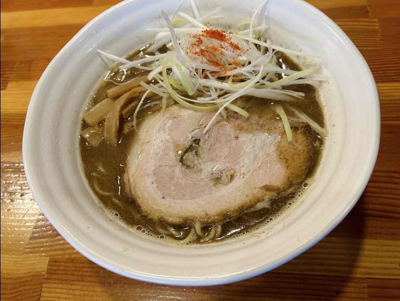 店主の考える「毎日食べられる富山ブラック」を追求!動物系スープ+乾物スープ、そして誠や専用粉を使用した特注極太麺を堪能してください。
