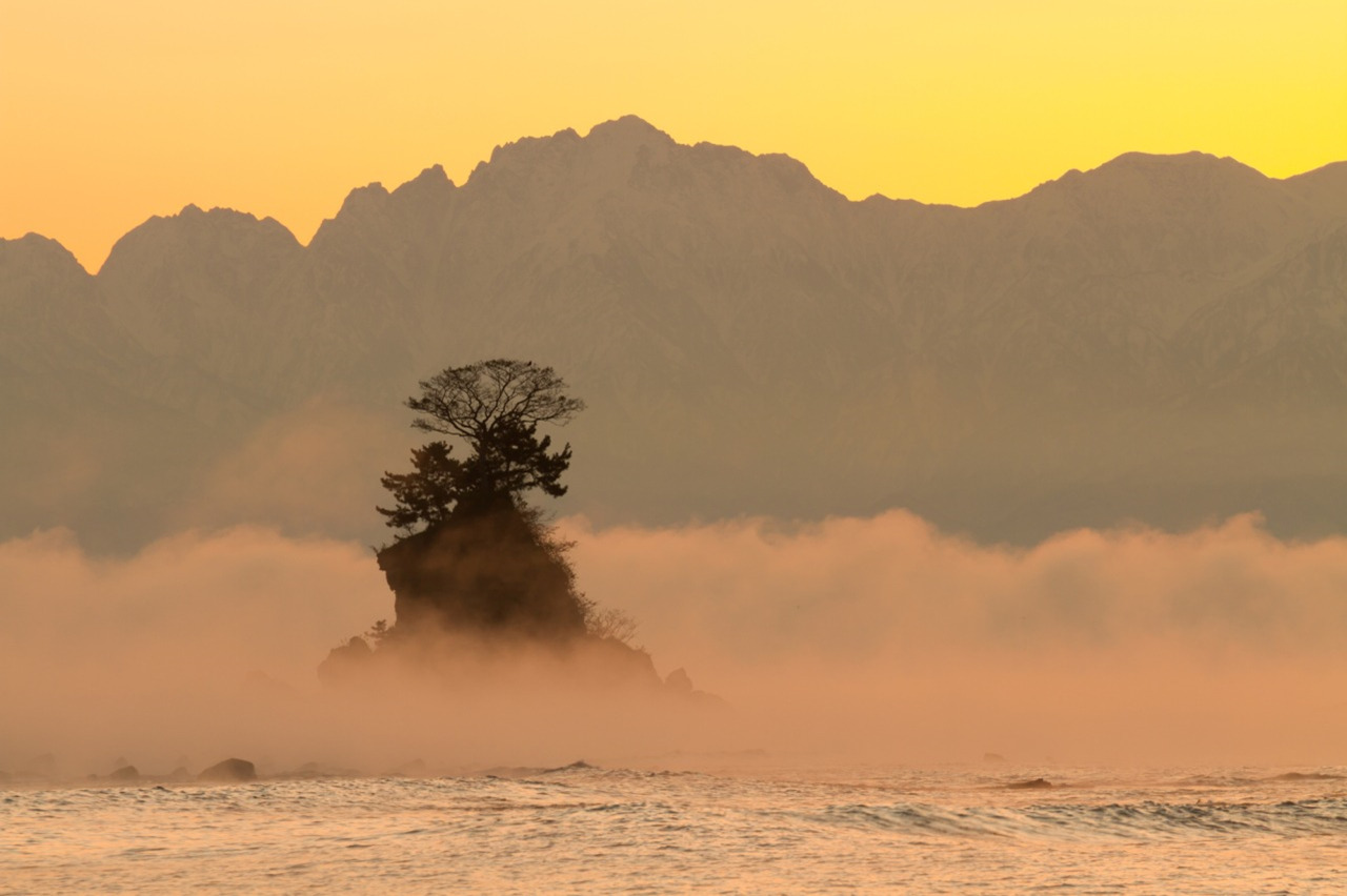 この幻想的な気嵐の雨晴海岸はカメラ好きの方に大人気で、条件の良い日は早朝から何人ものカメラマンがベストショットのために挑戦しています。