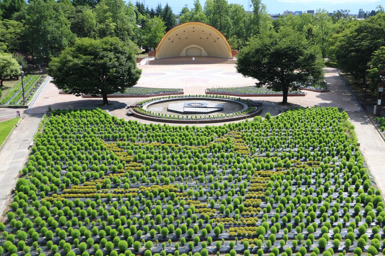 砺波市の砺波チューリップ公園は、春には「となみチューリップフェア」が開催され、色とりどりのチューリップが咲き誇りますが、夏には明るくさわやかなコキアの大花壇がお目見えします。