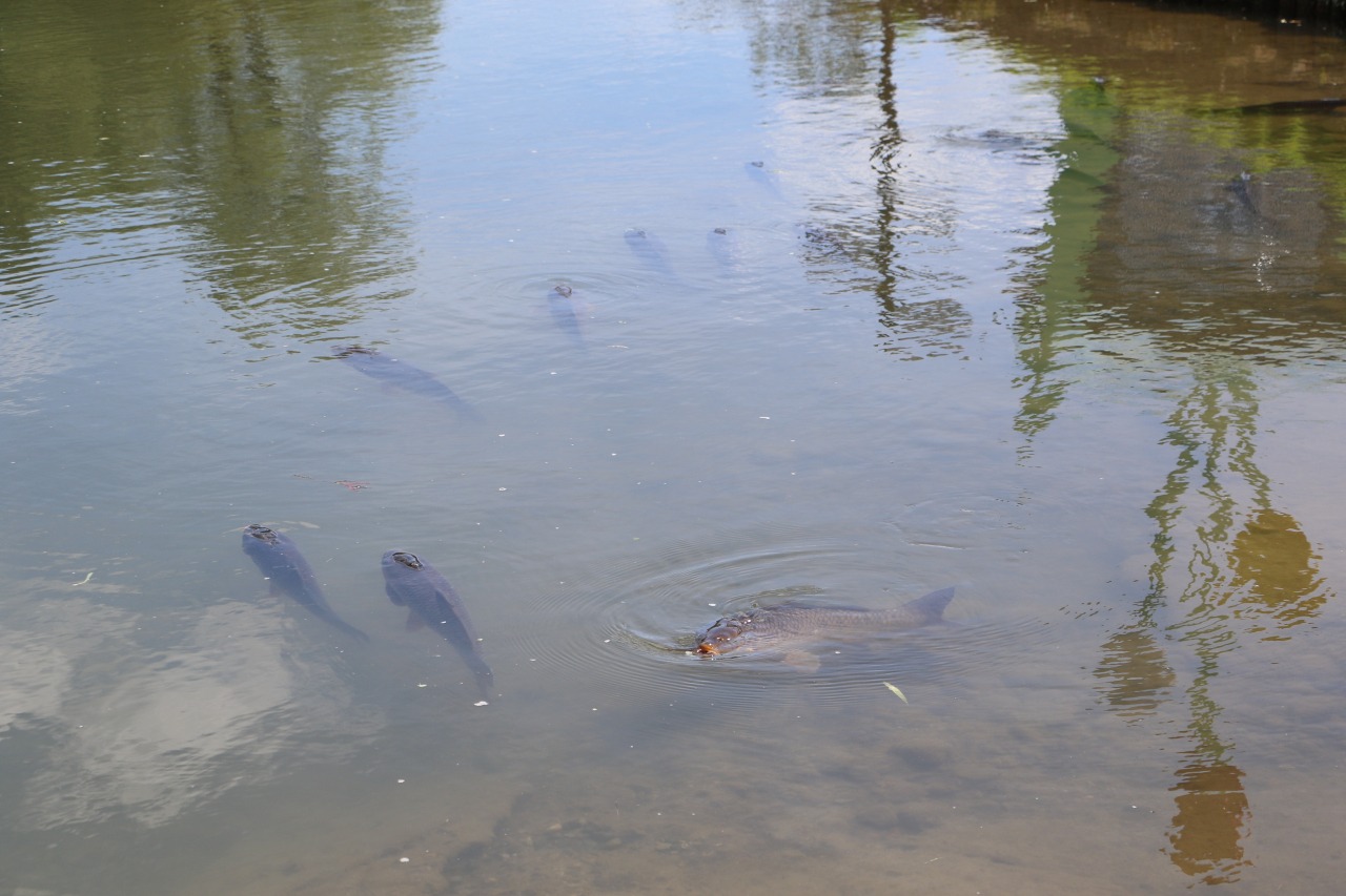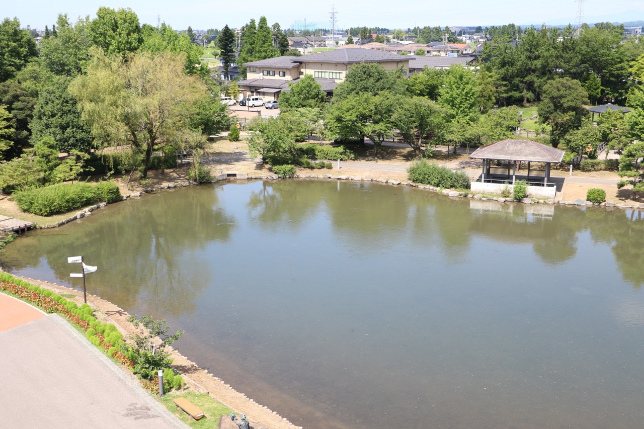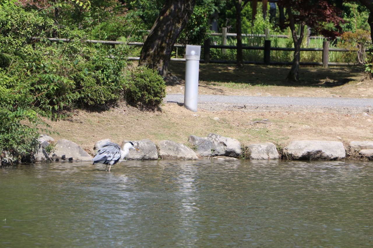 ひょうたん池を観察すると、鯉が涼しげに泳いでいる様子や、サギが水浴びをしている姿も見られます。