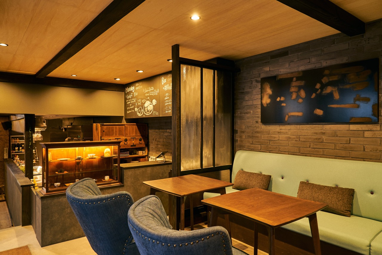ここは、南砺市井波の路地の奥にある小さなカフェバーです。地元の職人がよく使うヒノキやクリやサクラ。