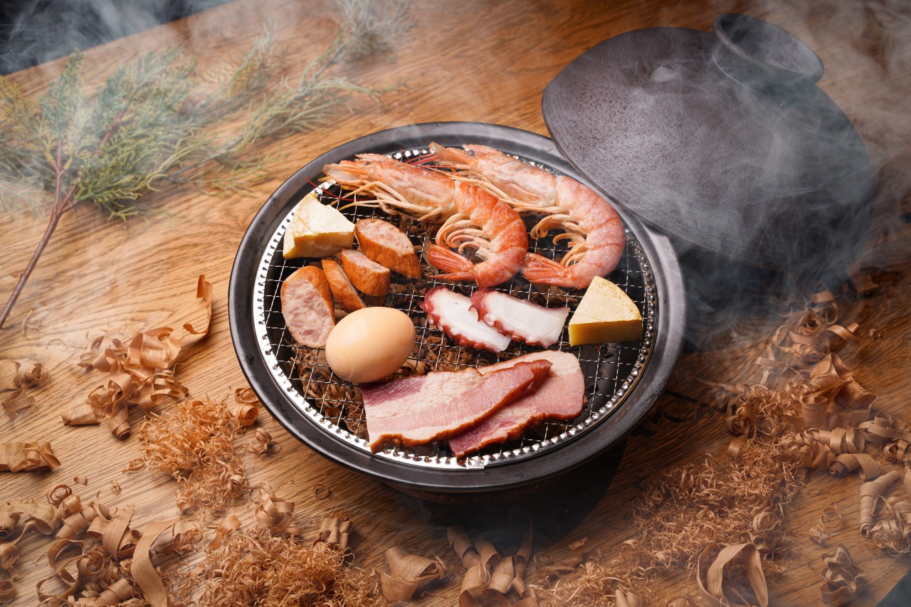 木彫刻職人が削った木くずで、燻製料理をつくりました。