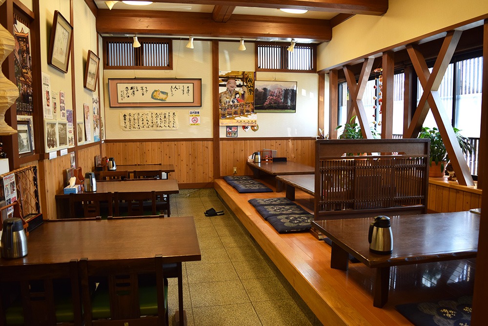 麺類、丼物、各種定食まで豊富なメニューを揃えております。4人テーブル席が3席、6人小上がり席が3席、お一人様から御家族連れまで、ゆっくり御食事して頂けます。事前予約して頂ければ20名程度の御食事も可能です。